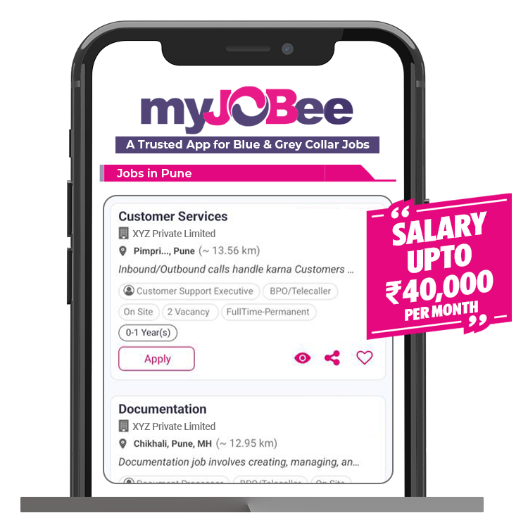MyJobee is a trusted job app connecting job seekers and employers across India, including Pune, Mumbai, Delhi NCR, Noida, Gurugram, Agra, Lucknow, and Nagpur. In Pune, MyJobee focuses on blue collar jobs Pune and gray collar jobs Pune that offer stability, growth, and fair pay across construction, manufacturing, warehouses, delivery, BPO, security, trades, and field sales sectors.