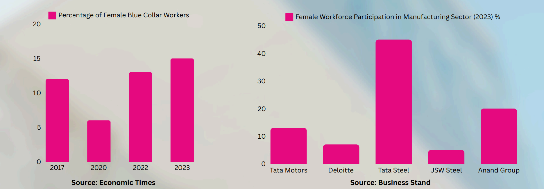 - Number of women in blue-collar jobs increasing across manufacturing sector, Business Standard, Dec 3, 2023